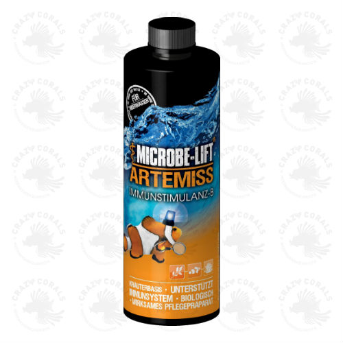 Ozon-Geräte während der Anwendung ausschalten. Achten Sie auf eine ausreichende Sauerstoffzufuhr. Entfernen Sie Kohle- und/oder Zeolith aus Ihrem Filter. Biologische Filter können weiterhin in Betrieb bleiben. Artemiss baut sich nach der Anwendung auf natürliche Weise ab, es ist kein Wasserwechsel erforderlich.